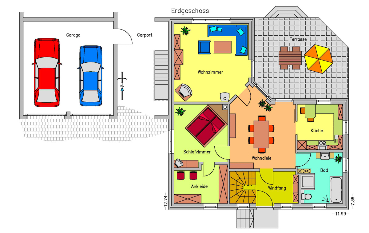 Einfamilienhaus Maria mit Keller, Doppelgarage und Carport als Winkelhaus mit großzügiger Terrasse