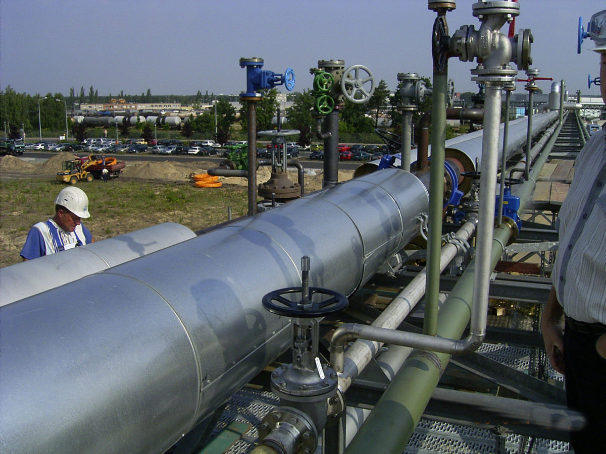 - Verlegung von Produktrohrleitung auf Rohrbrücken Dampf 3,5 und 24 bar, Druckkondensat, Stickstoff, VE-Wasser, Druckluft