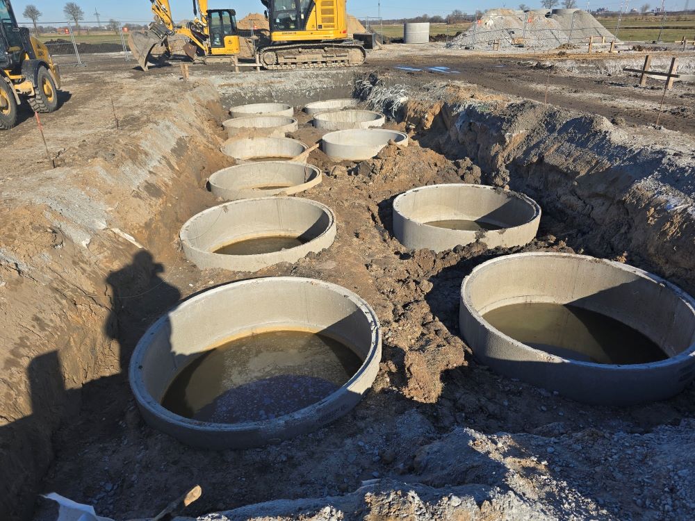 - Bearbeitung der Unterlagen für die wasserrechtiche Erlaubnis, Nachweise für Niederschlagsversickerung von Gebäuden, Straßen und Trafoauffangwannen.